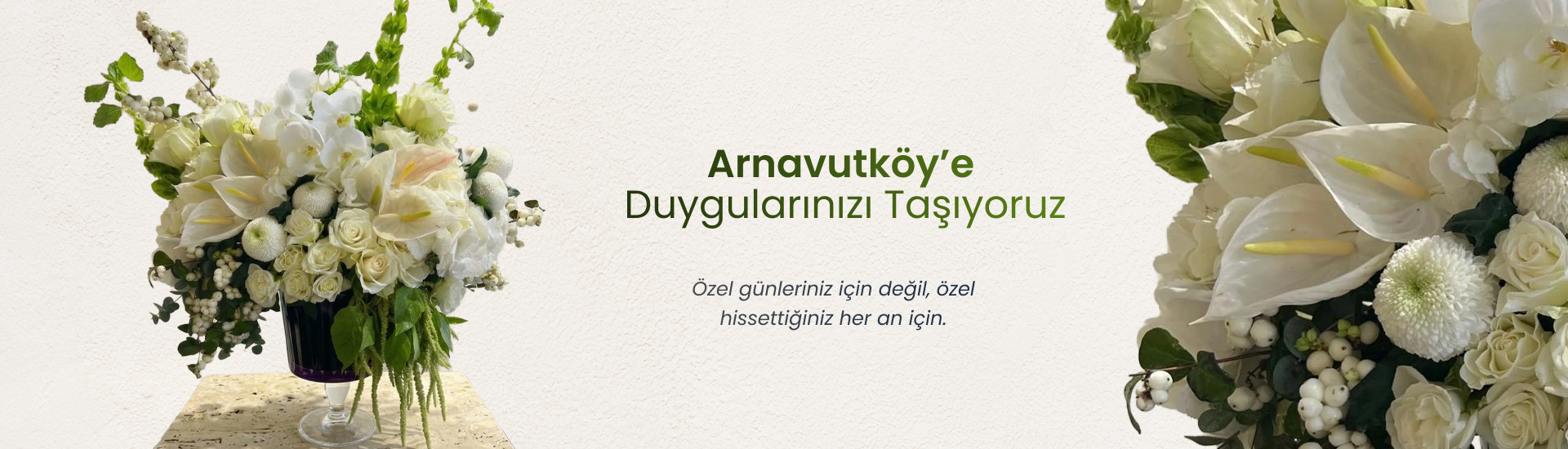 Arnavutköy çiçek gönderme hizmeti; hiç beklenmedik zamanlarda en sevdiğiniz insanların yüzünde oluşan sıcacık bir gülümsemenin sebebi olmanızı sağlar. Premium çiçek tasarımlarını firmamızın web sitesine göz atarak aranjman haline getirebilir ve güzel anlara değer katabilirsiniz. Evlilik yıldönümü, sevgililer günü, doğum günü, anneler günü ya da yeni iş/terfi kutlaması gibi özel anlarda çiçekleri kullanarak zarif jestler yapmak istediğinizde Nolina Çiçek web sitesini ziyaret etmeniz yeterlidir. hızlı teslimat çiçekçilik konusunda rakiplerinden hep bir adım önde olan firmamızın web sitesi üzerinden seçkin çelenk ve aranjman seçeneklerini tek tıkla sipariş edebilirsiniz. Bahsi geçen özel gün çiçekleri sayesinde zarif kişiliğinizi ön plana taşıyabilir ve sevdiklerinizi mutlu edebilirsiniz.